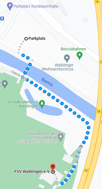 Zu Trainingseinheiten und Spieltagen bitte die Parkmöglichkeiten an der Rundsporthalle Waiblingen nutzen.